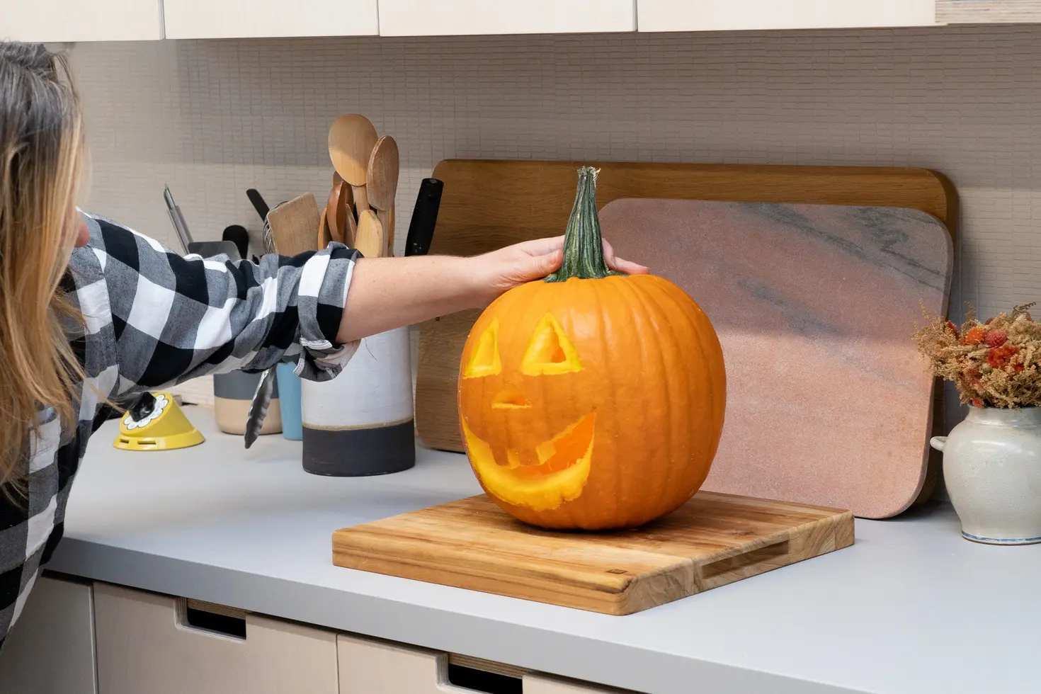 5/ හැලොවීන් රාත්රිය ආලෝකමත් කිරීමට වට්ටක්කා ගෙඩිය තුල ඉටිපන්දමක් හෝ පහනක් තබන්න. නැතහොත් විදුලි බුබුලක් තැබිය හැකිය.
